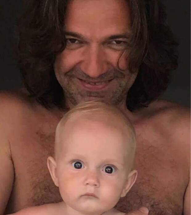 Дмитрий Маликов разместил на личной странице в соцсети необычное фото: певец держит маленького сына на руках и счастливо улыбается камере, пока Марк удивленно округляет глаза. К слову, позирует артист без рубашки.