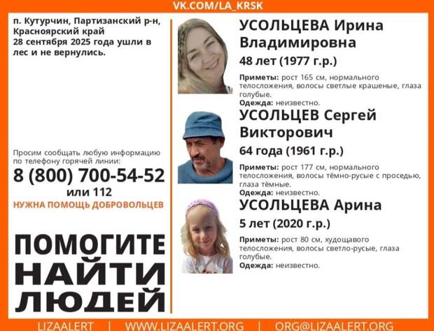 Поисками Усольцевых также занимаются волонтеры из «ЛизаАлерт»