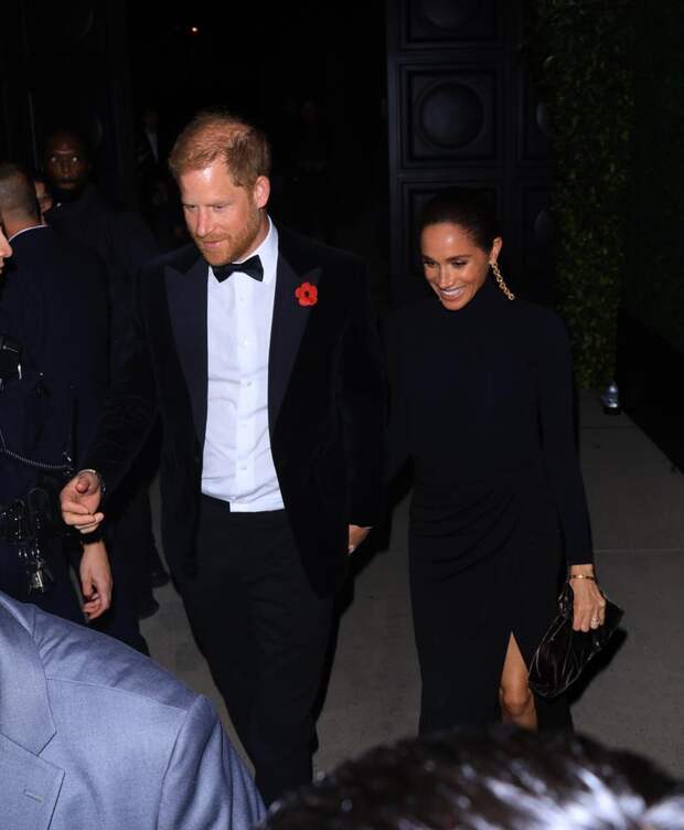 Не остались без внимания и другие звездные гости — принц Гарри и Меган Маркл. Перед камерами пара прошлась, держась за руки и улыбаясь. Одеты супруги были сдержанно: на Гарри был классический смокинг, а на Меган — черное платье с высоким разрезом.