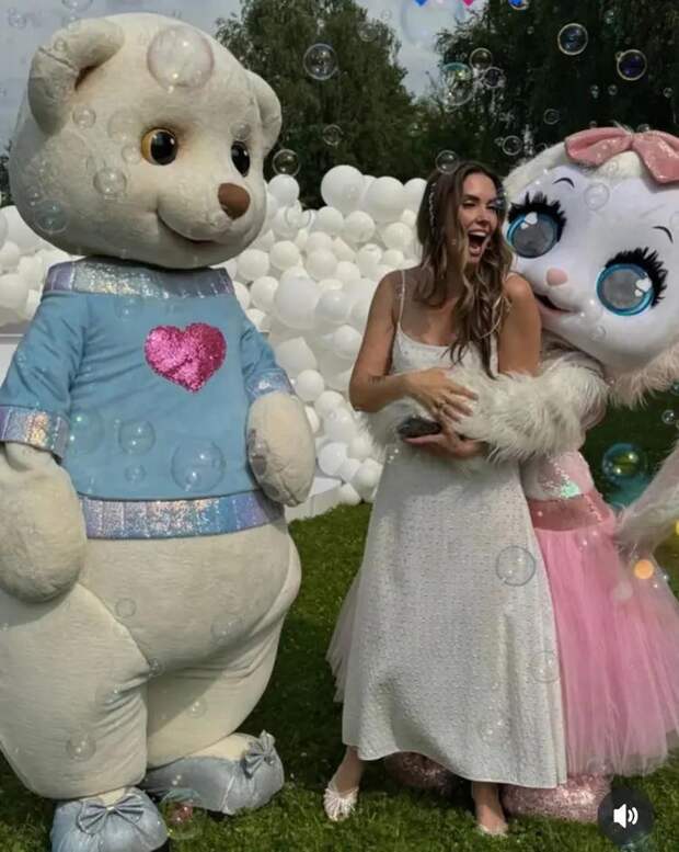 Пол будущего малыша звездная пара решила объявить оригинально — с помощью ростовых кукол. На гендер-пати пришли два больших кукольных медведя — синий и розовый. Когда вскрыли конверт, к Агате с объятиями направилась розовая медведица, возвещая о том, что у супругов родится девочка.