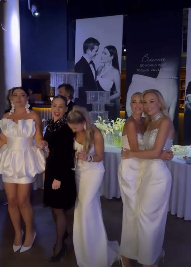 Стоит отметить, что супруга 43-летнего Романа Павлюченко сменила за праздник два образа. Сначала она вышла перед гостями в длинном белом платье невесты, а во время танцев переоделась в более откровенный наряд — короткое платье, не сковывающее движений.