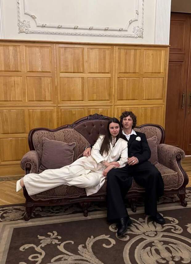 Для важного дня невеста выбрала лаконичный белый образ — удлиненный жакет и брюки, а жених появился в классическом черном костюме. После регистрации пара и гости отправились в ресторан, где отметили событие в уютной атмосфере.