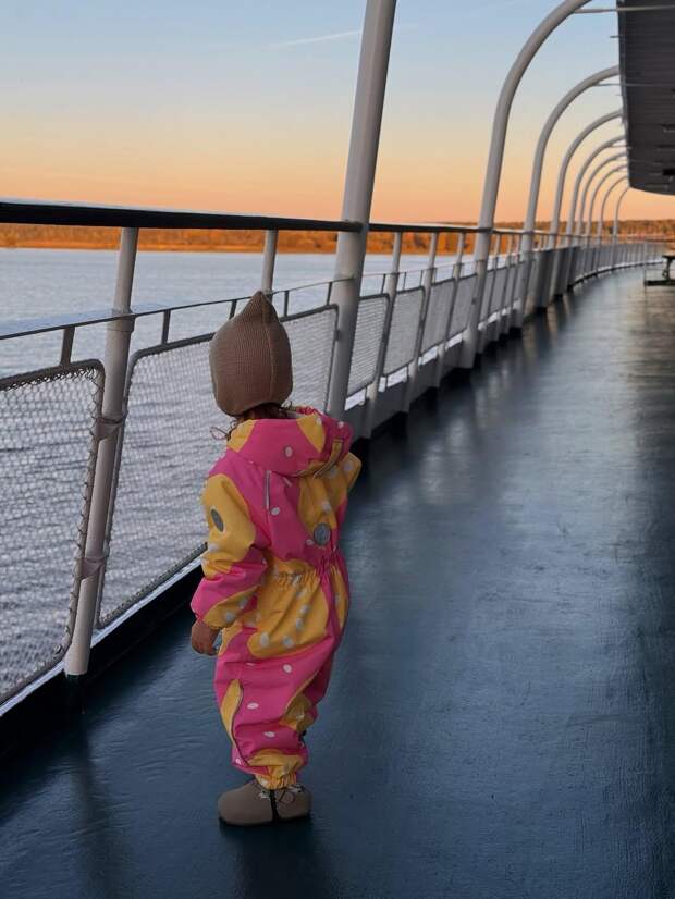 По словам Татьяны, для Вагана это первый в жизни круиз, тогда как дочь уже успела освоиться на воде и не впервые путешествует речным транспортом. Для поездки мальчику выбрали спортивный костюм зеленого цвета, а маленькая Матильда предстала в бело-розовом платье с чепцом.